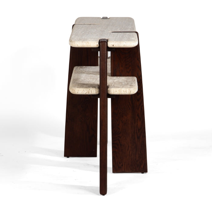 Material: FSC Certified Oak Wood, Travertine stone